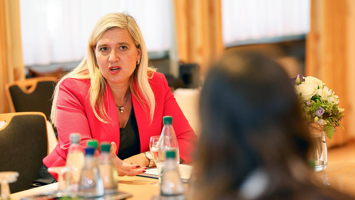 Staatsministerin Huml und Stiftungsgeschäftsführerin Mirjam Eisele berichteten anschließend, welche weiteren Projekte die Stiftung unterstützt, welche innovativen Programme sie mitentwickelt hat und was sie für die Zukunft plant. 31 Projektträger hat sie bis heute gefördert, diese konnten mit Fördergeldern der Stiftung über 80 Projekte umsetzen. Eisele erläutert: „Im Fokus der Arbeit steht dabei das Ziel, Jugendlichen aus Mittel-, Real-, Förder- und beruflichen Schulen einen Jugendaustausch zu ermöglichen. Diese nehmen bislang nur selten an internationalen Maßnahmen teil.“